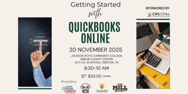 The session, titled “Getting Started with QuickBooks Online,” will be held on Thursday, November 20, from 8:30–10:00 a.m. at Jackson State Community College in Trenton (2071 US Highway 45 Bypass, Trenton, TN 38382).